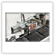 Groupe de coupe en bout pneumatique pour la coupe à 90° du chant en excédent dans la partie avant/arrière. Possibilité d'excluir le groupe par PLC.