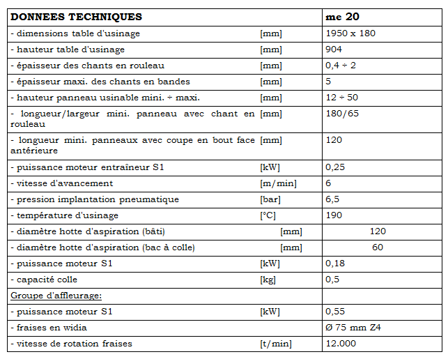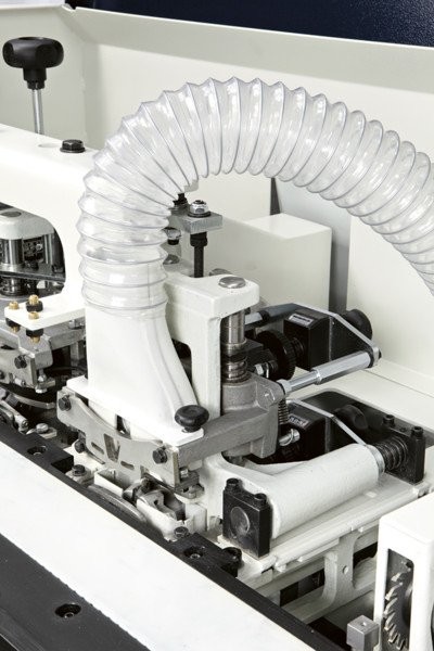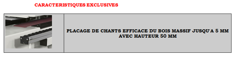 Le groupe est équipé de fraises, diamètre 72 mm: une partie du tranchant, pour l'affleurage des chants rayonnés (2 mm) et chants minces chanfreinés. La partie droite du tranchant est utilisée pour l’affleurage des chants en bois jusqu’à 5 mm. Pour le changement de la position du chant rayonné à chant en bois, il suffit de déplacer les fraises sur le même axe. L’épaisseur est indiqué par 2 indicateurs numériques.