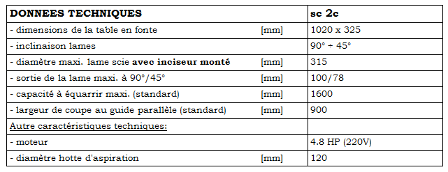 Groupe scie avec capacité lame de diamètre maxxi. 315 mm aussi avec inciseur optionnel monté (lame non inclue)