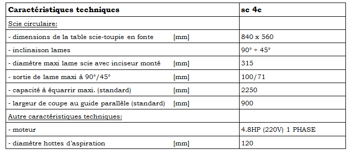 SCIE CIRCULAIRE A LAME INCLINABLE minimax sc 4e Table de 8 pieds