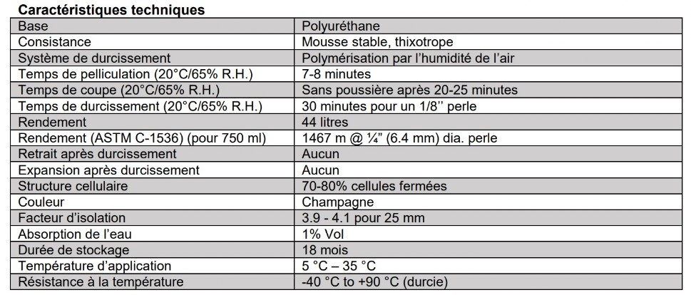 Mousse polyuréthane monocomposante, lowexpansive, à utilisation au pistolet